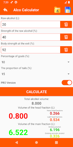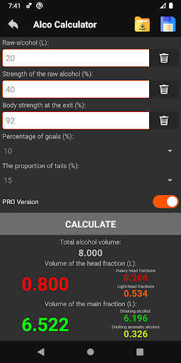 Calculator for distillers, moonshiners, brewers and anyone who deals with homemade drinks.