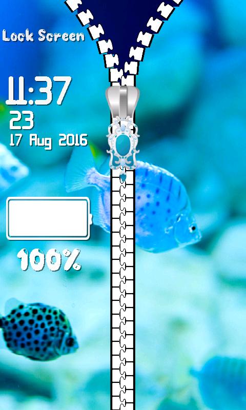 If you are looking for a way to change the look of your phone your quest is over. Download free the best Aquarium Zipper Lock Screen app and turn your device into something miraculous. Browse the latest photos and be surprised with the exclusive pictures that will take your breath away. The sandy bottom is embellished with red rocks and radiant green seaweed. It is the home of the cutest spotted fish that you can keep as the pet. Look them swimming and relax. With the popular Aquarium Zipper Lock Screen you can enjoy the sensational water creatures. Imagine that you can dive there and meet these beauties. They attract your attention with the possibility to breath under the surface. You wish that you can become one of them. The coolest Aquarium Zipper Lock Screen will provide you with the best photos for the foreground of your phone. Embellish it with your name which color you can change easily. Tap preview to see how it suits your needs. Observe the magnificent coral reef and imagine that you can hide behind it from the predators. With the newest zipper locker for screen you will sail away to the land of your dreams. There you will forget all your problems and worries. Finally all the stress will be gone and your mood will improve. The spectacular pink bottom will charm you with its beauty and you will wish that you can live there. Get the top Aquarium Zipper Lock Screen and find the photo depicting ancient sculptures under the water. The wonderful school of fish swims around them. Embellish your background with this extraordinary picture.