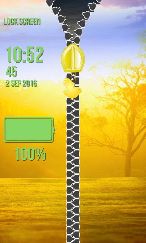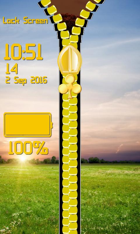 Also you can adjust the color of the chain and select your favorite one. Open up your gallery and set the picture you like the most as your background. Moreover, you can enter your name and it will be placed in the upper corner of your phone. Adjust the font style of it to suit your taste. The installation process for the latest zipper locker for screen is very easy. This the newest application is designed for people of all ages so do not worry because even your children can use it. You will be amazed when you hear that you can even set the format of the time according to your needs. The coolest zipper lock screen will take your breath away when you discover the option which will provide you with the chance to see the battery status whenever you wish. Can you believe that you can also change its color and font style? It is possible with this the most popular zipper lock screen. Do not think twice but hurry and download it free of charge today.