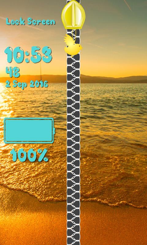 If you want to embellish your phone in a completely different manner and impress your friends you do not have to search any longer. Download free the newest Best Sunrise Zip Lock Screen app and scroll through the loveliest photos ever. Suddenly you can unzip the mesmerizing image with the zipper and you are enchanted with the scenery you see. The cosmic ball at the horizon is glowing and making everything in front of it sensational. The tallest monument seems to be touching the sky. With the top Best Sunrise Zip Lock Screen you will have the opportunity to pull down the zipper across the picture of wonderful sandy beach in the early morning to unlock your smartphone. Show the world that you will spend the summer time here and set this image as the background. The coolest Best Sunrise Zip Lock Screen will take you to a tropical paradise. The most romantic moments are awaiting you to. Hurry up and sit in the deckchairs on the splendid beach with your soulmate and admire the glowing sky at the break of dawn. Nothing can be prettier than nature itself. With the popular Best Sunrise Zip Lock Screen you can adjust the color and the font of time and date so that it suits the picture that you have set as the foreground. But before you apply all the adjustment tap the preview button to check out whether you like them. With the coolest zipper locker for screen you can also change the style of the hook and make sure that the new one embellishes the chain wonderfully. Pull down the zipper in the shape of a