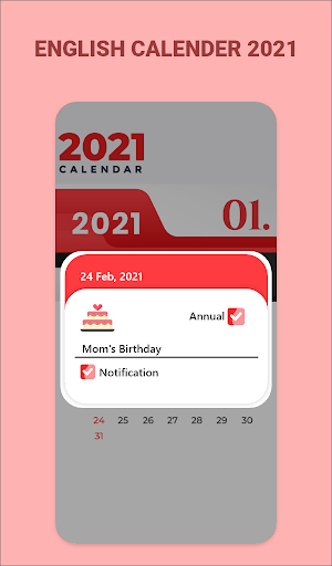 Download the new English Calendar 2021 Holiday, available for android devices.