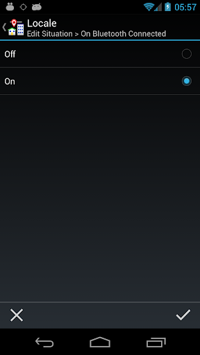 The Locale Bluetooth On Connect condition plugin lets you choose settings on your Android device based on the connection, or lack of connection, to Bluetooth devices.