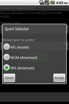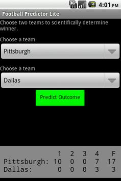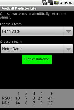 Football Predictor lets you scientifically* predict the outcome of Australian and American football games (pro and college), including points per quarter for American football and goals/behinds for Aussie rules.
