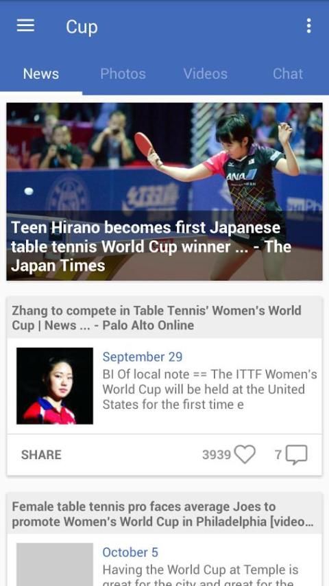 app, you are able to reach the latest news about Table Tennis including