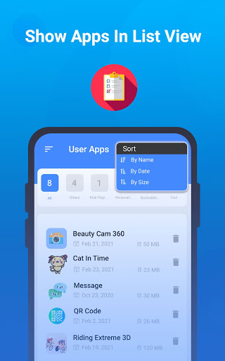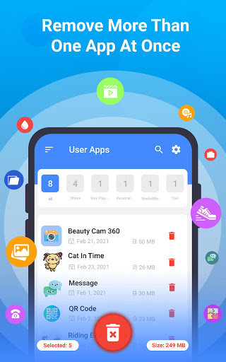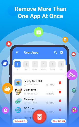 App Uninstaller is a tool to uninstall apps for android phones. It is an easy-to-use tool to remove apps that you don't need anymore and gets more space. You can select multiple apps that you want to uninstall, and delete multi apps in one click.