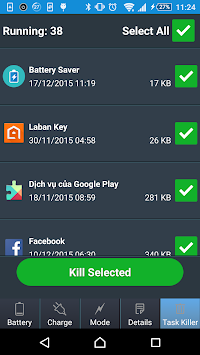 - Task Killer kills tasks with one click.