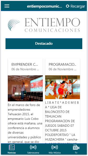 Aplicación para "Entiempocomunicaciones.com". Consulta las noticias más relevantes de Tehuacán y la región, escucha nuestra estación de radio en vivo (La Sabrosuena).