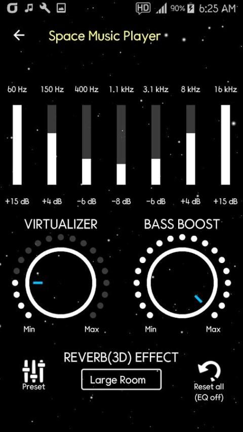 VIRTUALIZER, Bass Booster, REVERB EFFECT