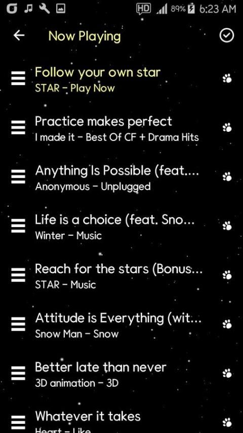 The space music player is made of openGL 2.0, so the movement of stars is smooth. Like the opening of Star Wars, we have created a screen to fly in outer space.