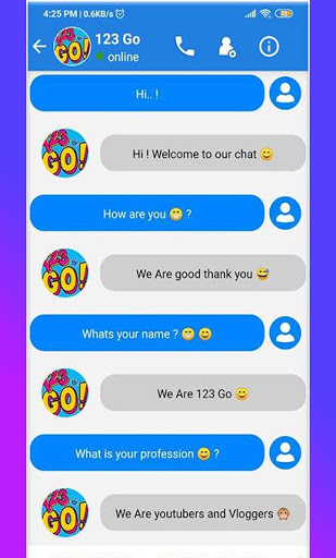 Today, 123 go challenge wallpaper call is coming with many features, like you can simulate a fake call with the famous person that you like and your idol, so here in 123 go challenge call fake call, and also you have a fake chat with him, and also receiving a cool video call from 123 go challenge calling, and there is also a contact section when you can also contact by fake calling other famous personalities, they are related to 123 go challenge prank calling app.