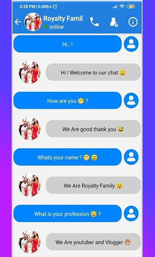 The royalty family video call and Chat (Prank) is a simple and profissionel application to make call video with your Idol royalty family chat call and fake video call with a simple live chat, Enjoy calling royalty family video calling with easy way, feel free and download this royalty fam video call for have fun with friend.