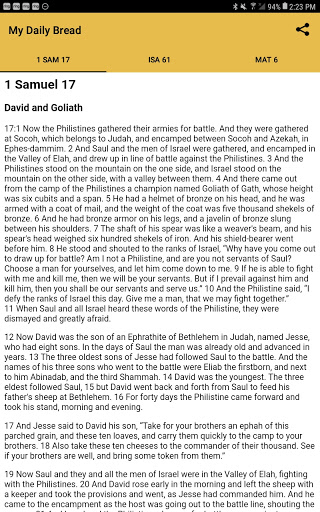 Did you know you can read the entire Bible in one year, and it only takes about 10 minutes a day! My Daily Bread provides a daily schedule of three short sections of the Bible to read each day, and automatically updates with a new section daily. Reading each of the three short sections will ultimately lead to you having read the entire ESV Bible in one year!