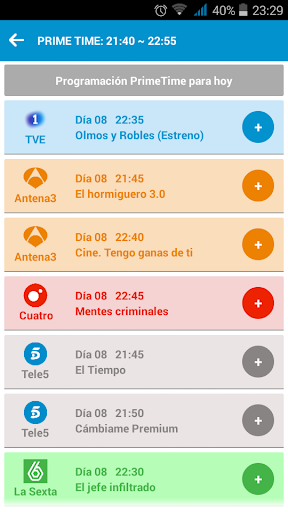 * Primetime Visualisatie.Het maakt het mogelijk om de programmering van het prime -time -schema te kennen.