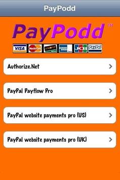 This Android App makes taking credit card payments Fast, Easy and Secure. PayPodd has a simple entry screen and works seamlessly with the "Big 4" major online gateways; Authorize.Net, PayPal Payflow Pro, Web Payments Pro (US) and Web Payments Pro (UK).