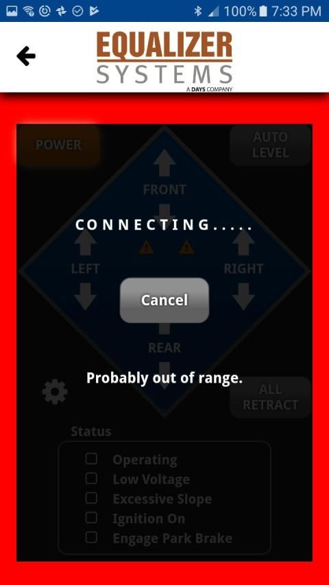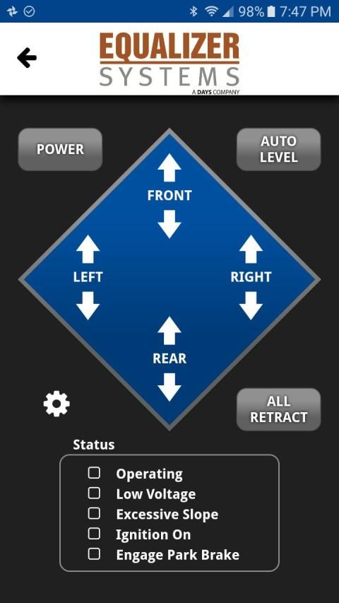 Bluetooth remote control for operating a Bluetooth enabled Equalizer Systems EQ Smart Level vehicle leveling system.