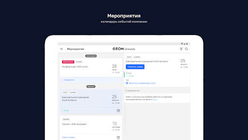 ⁃ Calendrier des événements d'entreprise avec la capacité de demander une participation
