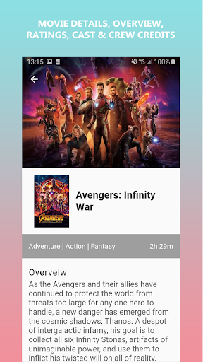 - Movie Theater app provides you movies status, release date of the movie, total budget of movies and total revenue of the movie.