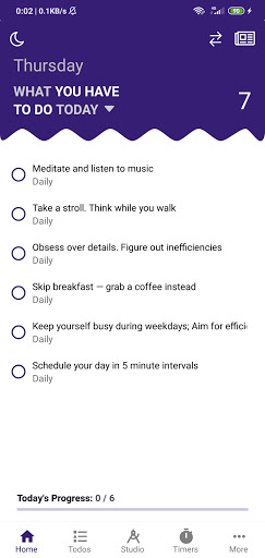 RemakeU is a free productivity and time tracker app that aims to helps you build a routine of positive, life changing habits. Set personal goals, track your progress, and motivate yourself to new heights. We have also gathered a collection of habits from some of the most influential humans who ever lived — with the hope that some of them can be useful to you.
