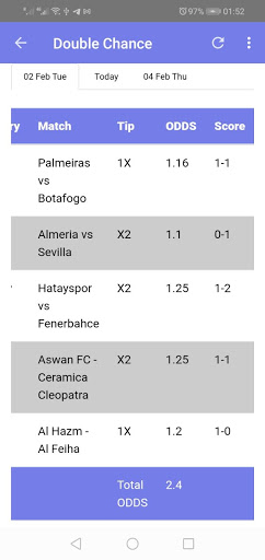 If you been losing bets or your looking for great and safe odds, then you’re in the right place. Double chance predictions app is all what you need. Our odds are mainly double chance 1x, double chance 12 or double chance x2.
