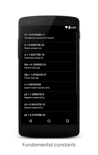 This app is scientific calculator with the ability to edit your printed data . Here is also list of fundamental physical constants