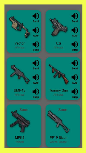 Oyunda kullanılan silah resimleri görüp, tek atış- seri atış ve susturuculu atış seslerini dinleyip hangi silahın hangi haritada bulunduğunu tek ekranda bulabilirsiniz..