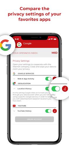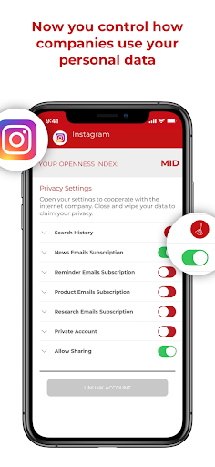 Google, YouTube, Facebook, Instagram, LinkedIn, Netflix, Spotify, Twitter: all these companies need your consent to monetize your data. Use ErnieApp and grab the opportunity to make your ‘privacy choice’ respected by actioning the switches ON/OFF/DELETE as ‘you like’.