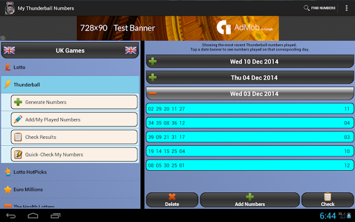 Lottery Bot allows you to keep a log book of numbers you played for a particular game by date. You can save a number generated by the application or manually enter your own ones. There is no limit to the numbers you can save.
