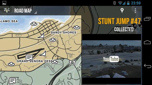 It works as a complement for Rockstar Games Grand Theft Auto V on all PS3, PS4, Xbox360 and Xbox One versions, and will help you to find all letter scraps, stunt jumps, spaceship parts, under the bridge, knife flights and many others.