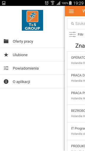 Aplikacja umożliwia dostęp do ofert pracy agencji T&SGroup.