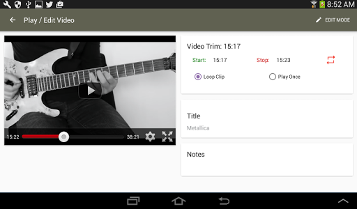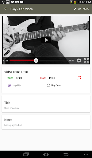 Back in Play mode you can now watch just the portion of the video you've trimmed. Select “Loop Mode” to play a clip over and over, freeing your hands to concentrate on the music.