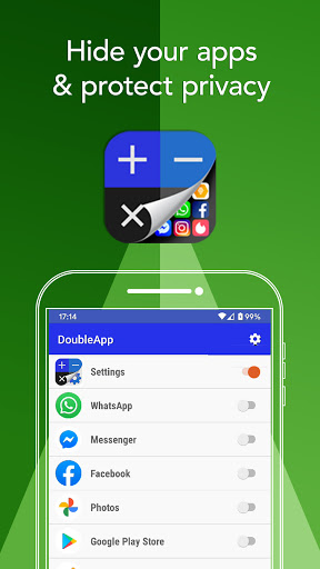 With DoubleApp you can hide all your secrets apps, messages, photos and more. Download Doubleapp now for free: Doubleapp will hide your secret apps, files, messages, photos and more in a secret vault that will be accessible from an app that looks like a calculator. Type your secret code in the calculator and the app will open a new window with all your secret where nobody would find them.