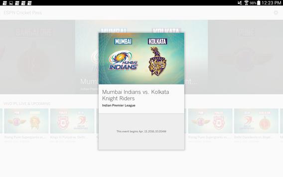 Watch all 60 matches of the VIVO Indian Premier League, featuring the best cricket players in the world battling for supremacy. Don’t miss your chance to see every amazing run by downloading the ESPN Cricket Pass for living streaming of every match. Coverage begins April 9th.