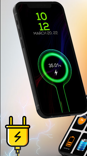 When you plug mobile phone using charger theme, charging show will appear automatically with selected battery charging animation effect. The Battery charging photo appear on lock screen when phone is connected to the charging cable without opening the charging play app. It is easiest way to measure a battery's charge level. Free charging animation app show battery widget charging animation photo will display the charging screen only on lock screen. Battery charging animation effect is a great app to use. Using that you can monitor charge screen or battery charge level you will be notified when phone battery is fully charged.