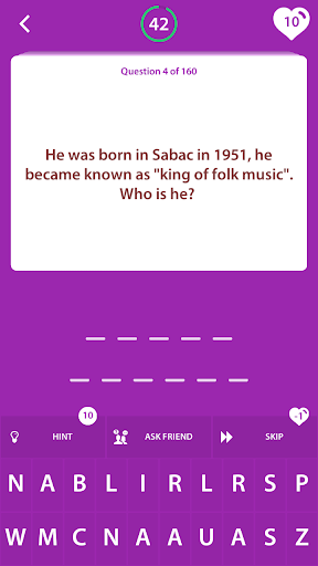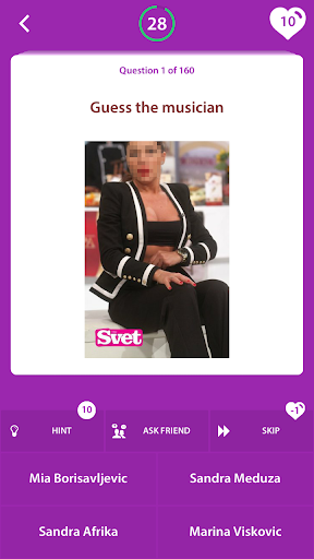 For the purpose of suiting everyone’s music taste, we offer a certain variety of music genres (Serbian folklore, folk, pop, rock, jazz) in this trivia questions and answers quiz app. For those of you who like Serbian folk a little bit more, we offer superstars like Ceca, Lepa Brena, Dragana Mirkovic and more.