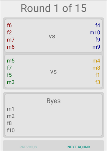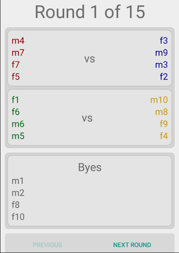 Create teams and pairings for a group tournament, where players switch teams each round and play against different opponents. Group Tournament Manager ensures players play an equal amount with a variety of teammates and evenly mixed teams.