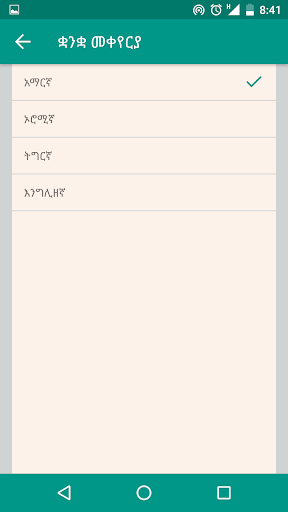 supports four langauges (Amharic, Afan Oromo ,Tigrigna and English). The app incorporates task management feature with notification.