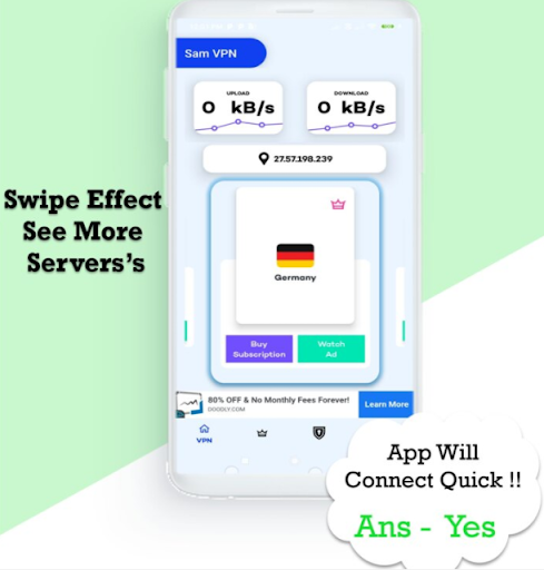 SAM VPN Is one of the Fastest Secure Servers VPN with Unlimited Bandwidth and it's 100 percent FREE forever For Everyone you can swipe to see more servers in SAM VPN In this VPN app you can connect any country server on only one click. now you can easily unblock those ego-restricted websites and gain access. thank you for downloading SAM VPN, this VPN is made by Will_DeV & Wali...
