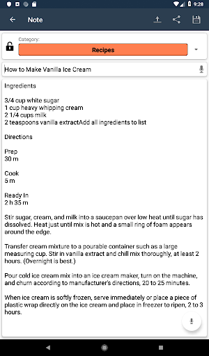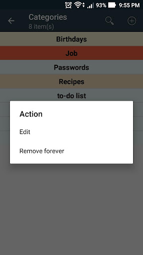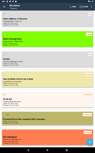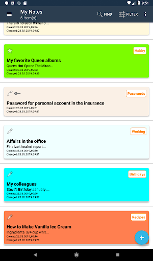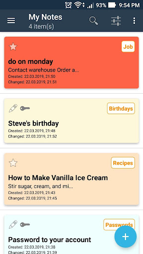 - the ability to work with categories of notes, a quick transition to favorites, as well as password protection notes and the ability to set alerts on such categories of notes, such as birthdays. Exporting saved information allows you to quickly use it in other applications. The application allows you to view third-party text files and save them as a note, as well as attach images to the note.