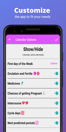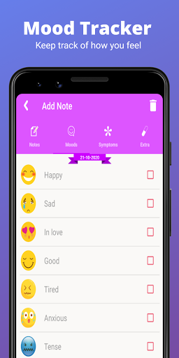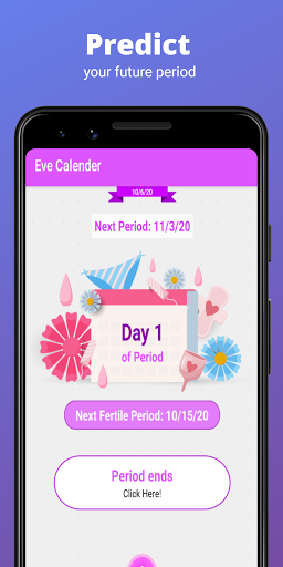 Eve Calendar is the perfect tool to Keep track of your period / menstrual cycles . With Eve Calendar you can keep track of your periods, cycles, ovulation and the chance of conception, pregnancy, mood, medication,