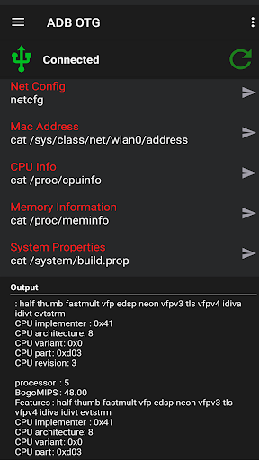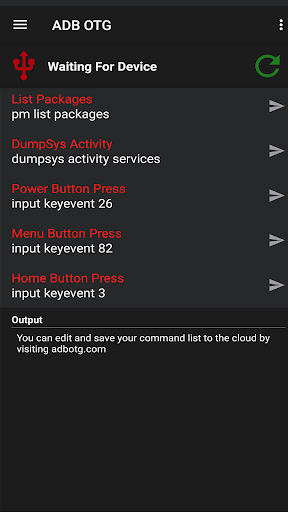 With ADB OTG you can specify a list of commands from an online control panel which will sync with your device to be easily executed via ADB on your target device.