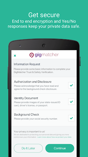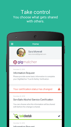 GET SECURE: Evident protects your information with end-to-end encryption ensuring that information is accessible only to you. And when you choose to share your information, often a simple “yes” or “no” is all that has to be communicated. With Evident, there is no need to constantly provide your private information to others.