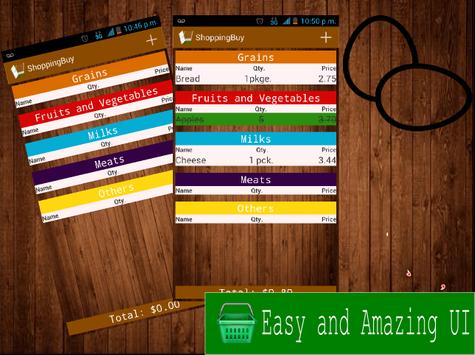 ShoppingBuy provides you a portable and easy to use shopping list.Track your shoppings with this app, You can write the food items you need to buy at the Supermarket and do not have to worry about papers or a pencil!. Neither a calculator because ShoppingBuy tracks the total price!. It easy and has an amazing and friendly UI, With ShoppingBuy you do not need to worry about a food item forgotten anymore!.