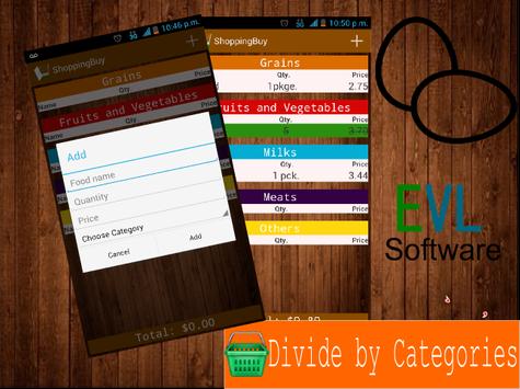 Organize your food shopping list organized how the food pyramid does!.ShoppingBuy lets you mark a food that you have bought already in a category by just clicking the name.