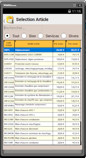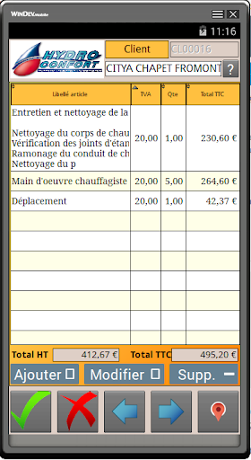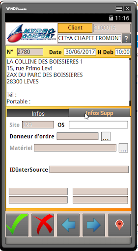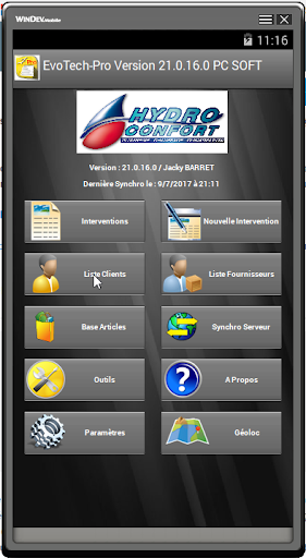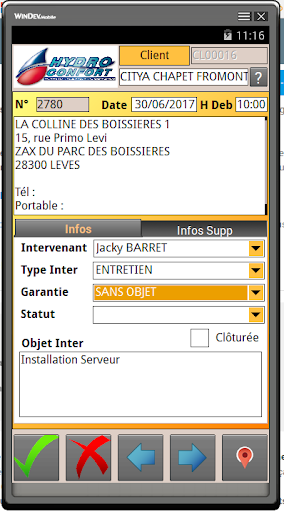 Interventionsmanagementsoftware (technische Inters, Schulung, Wartung, Lieferung usw.).Vollständig autonome Lösung zum Ersetzen herkömmlicher Dehnungsgurte."Evotech Android".Mit der PC-Anwendung können Sie die neuen Interventionen eingeben und konsultieren/drucken, die durchgeführten Interventionen. Es ist möglich, mit den dem Techniker zugewiesenen Interventionen umzugehen: Interventionsbericht, Zeitaufgaben, Kundenbeobachtungen, Unterzeichnungsname, Fotoaufnahme, digitale Signatur.Sobald das Interventionsblatt validiert wurde, kann ein Bericht automatisch an die E-Mail des Kunden sowie an eine E-Mail-Adresse des Unternehmens gesendet werden.Während der nächsten Synchronisation werden die durchgeführten Interventionen zum PC des Unternehmens zurückgebracht, und die neuen Interventionen, die aus dem Tablet wiederhergestellt wurden. Modus getrennt (Tablet)