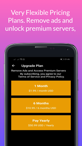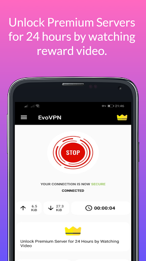 Evo VPN free version shows ads. Upgrade to premium to enjoy unlimited and ad-free VPN!