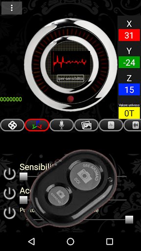 EVP 센서를 통해 스캔을 추가하는 EVP (Metaphon Voices) 등록을위한 응용 프로그램. 이 응용 프로그램은 휴대 전화의 센서를 사용하여 환경에서 상당한 차이를 압류합니다. 일부 매개 변수는 엔티티의 접근 방식과 그들과 의사 소통하는 방법 중 하나가 은유 인 것입니다. 첫 번째 화면에있는 세 매개 변수의 값을 변경하고 세 개의 버튼을 클릭하면 스캔을 활성화합니다.