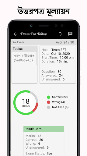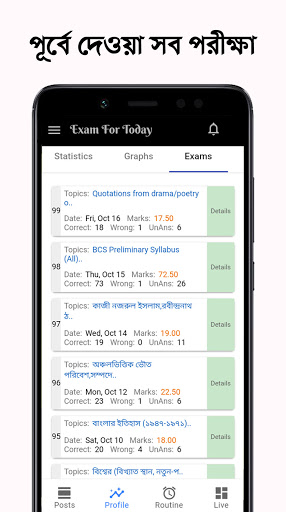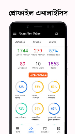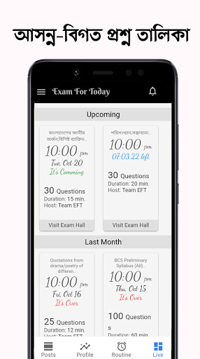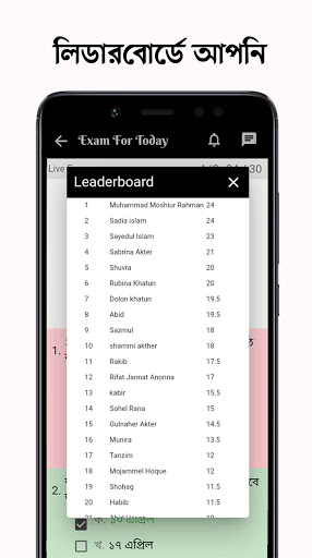 In the live exam app, you can easily prepare yourself for all types of government and private job exams in Bangladesh like BCS, Bank or Primary Assistant Teachers through a device. Generally, we organize live exams every day, where many candidates from all over the country take part. Everyone can easily understand their position with this competitive test by the leaderboard.