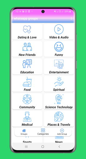 The improved design of the Group Links for whatsapp - New Whats Group Links application makes it very easy for you to find and join groups. All you need to do is download the app and open it. Once you are in you can click start and all the categories of whatsapp group links will be visible to you. You can now choose any group links for whatsapp you like. A "Join Group" button will appear in front of you, click it and you will be directed to the groups page where you can join the whatsapp group. Its that easy, find the whatsapp group link you like, hit the join button and there you go!