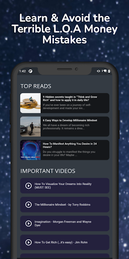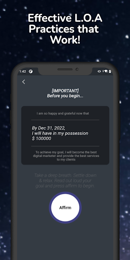 Start your money manifestation journey and see the money affirmations app benefits right from day 1! The Law of attraction only works when you work. Our dear universe likes action takers so take action now and start to change your financial life around.