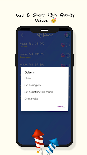 Record your voice, apply effects, and share them with your friends and family. also you can set as ringtone for your mobile.